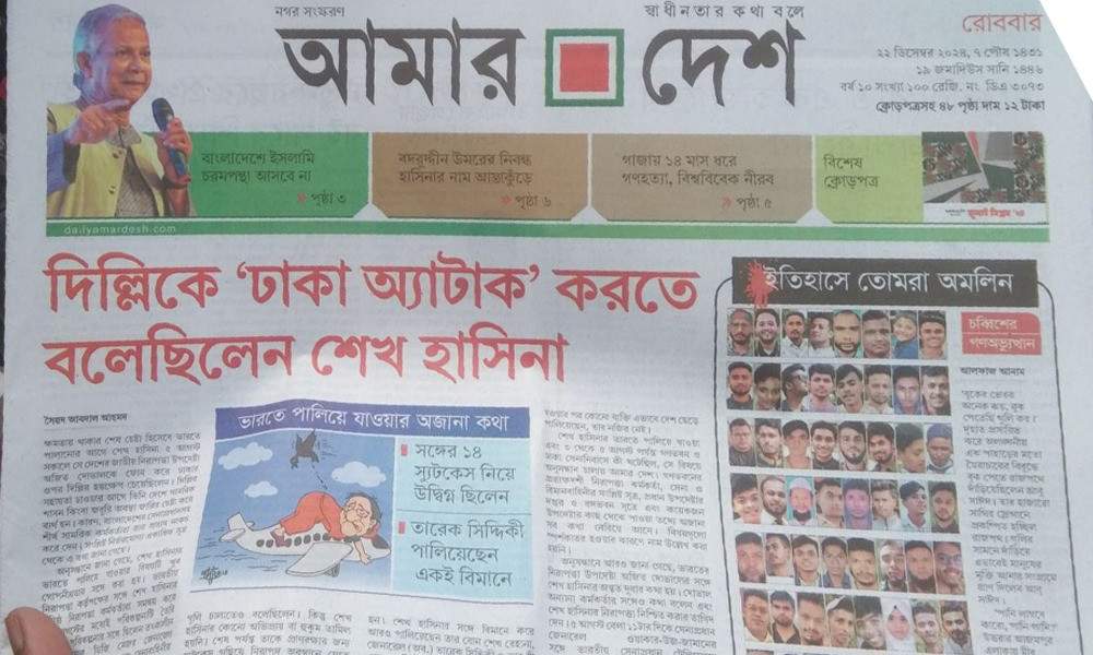জাতীয় দৈনিক ‘আমার দেশ’ প্রায় এক দশক পর আবার প্রকাশিত হয়েছে। ক্ষমতাচ্যুত আওয়ামী লীগ সরকারের সময় বন্ধ করে দেওয়া হয়