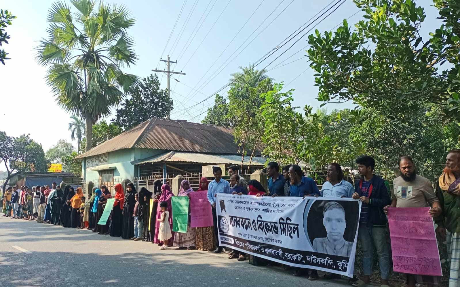 দাউদকান্দিতে সামি হত্যায় জড়িতদের বিচারের দাবীতে এলাকাবাসীর মানববন্ধন