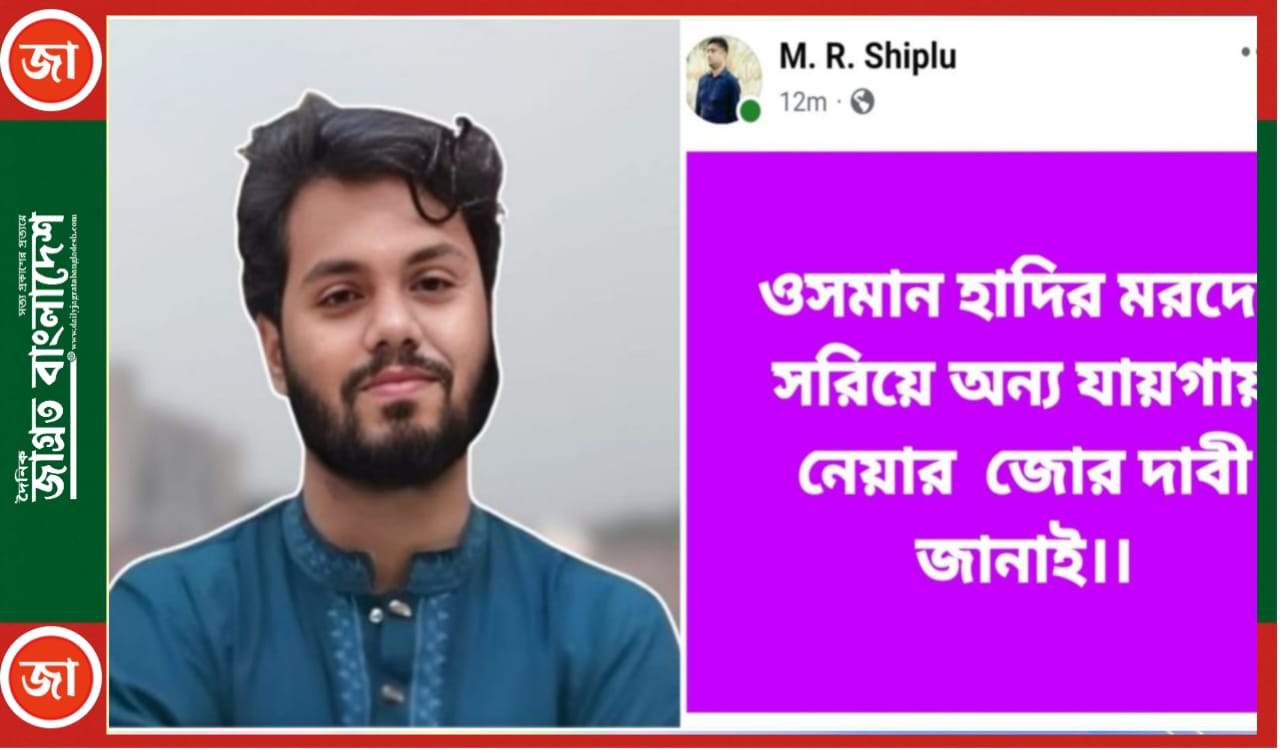 জাতীয় কবি কাজী নজরুল ইসলামের সমাধির পাশে দাফন করা ইনকিলাব মঞ্চের মুখপাত্র শরীফ ওসমান হাদির মরদেহ সরিয়ে নেওয়ার দাবি তুলে