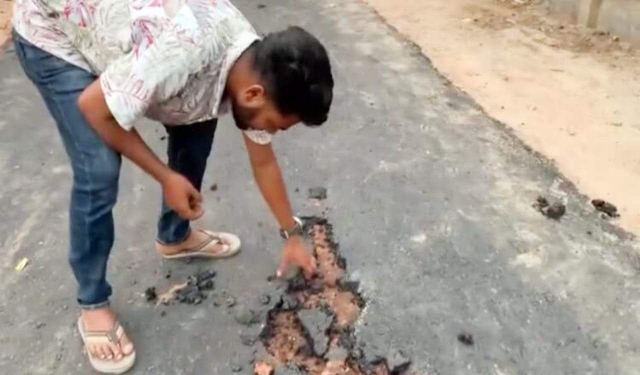 ফরিদপুরে ১ কোটি ৩০ লাখের সড়ক একদিনেই শেষ! হাত দিয়ে তুলছে কার্পেটিং