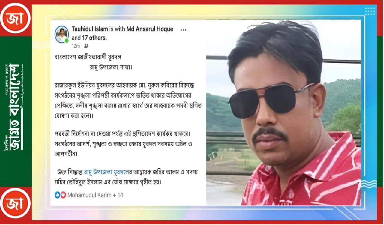 কক্সবাজারের রামুতে ৩০ হাজার ইয়াবা লুটের ঘটনায় জড়িত থাকার অভিযোগে বিএনপি ও এর অঙ্গসংগঠনের চার নেতার বিরুদ্ধে দলীয় ব্যবস্থা নেওয়া