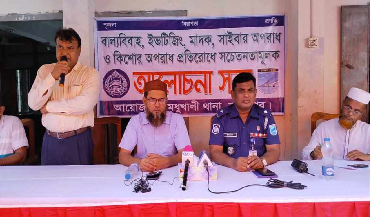 ফরিদপুরের মধুখালী থানার অফিসার ইনচার্জ মোহাম্মদ মিরাজ হোসেনের আয়োজনে বাল্যবিবাহ,ইভটিজিং, মাদক, সাইবার অপরাধ ও কিশোর অপরাধ প্রতিরোধে বিশেষ আলোচনা সভা