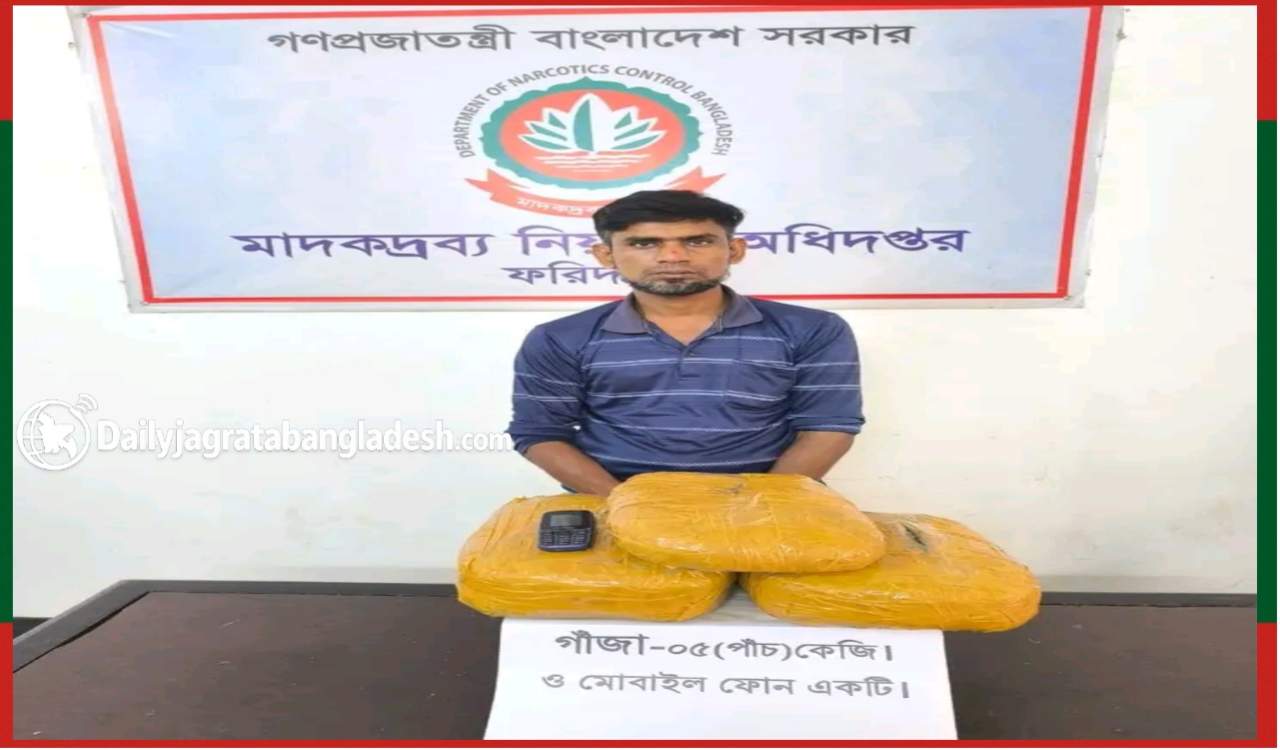 ফরিদপুরে ৫ কেজি গাঁজাসহ মাদক কারবারি গ্রেফতার