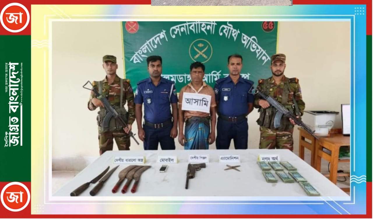 আগ্নেয়াস্ত্র, গুলি, বিপুল টাকাসহ সেনা অভিযানে কুখ্যাত সন্ত্রাসী জাদু আটক