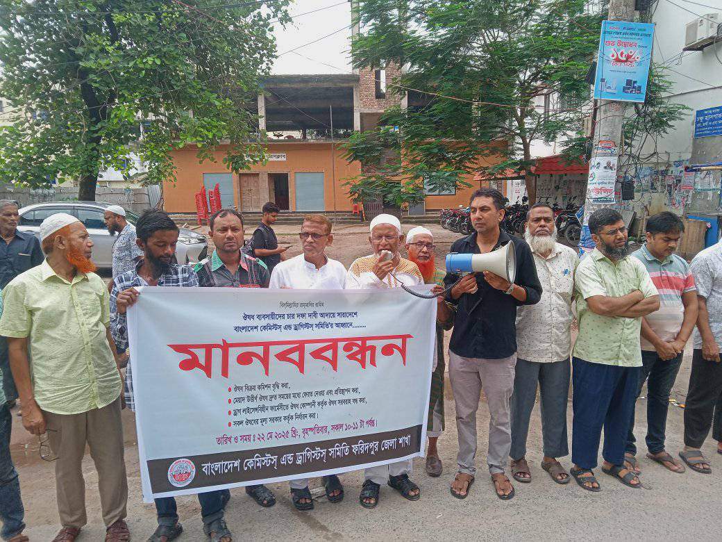 ফরিদপুরে চার দফা দাবিতে কেমিস্ট-ড্রাগিস্ট সমিতির কড়া হুঁশিয়ারি
