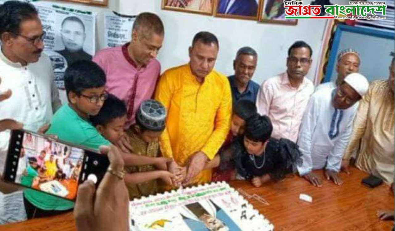 ছোট্ট শিশুদের সঙ্গে নিয়ে বঙ্গবন্ধুর ১০৪ তম জন্মদিনের কেক কেটেছেন শেরপুর-১ আসনের সংসদ সদস্য ছানুয়ার হোসেন ছানু। ১৭ মার্চ রবিবার