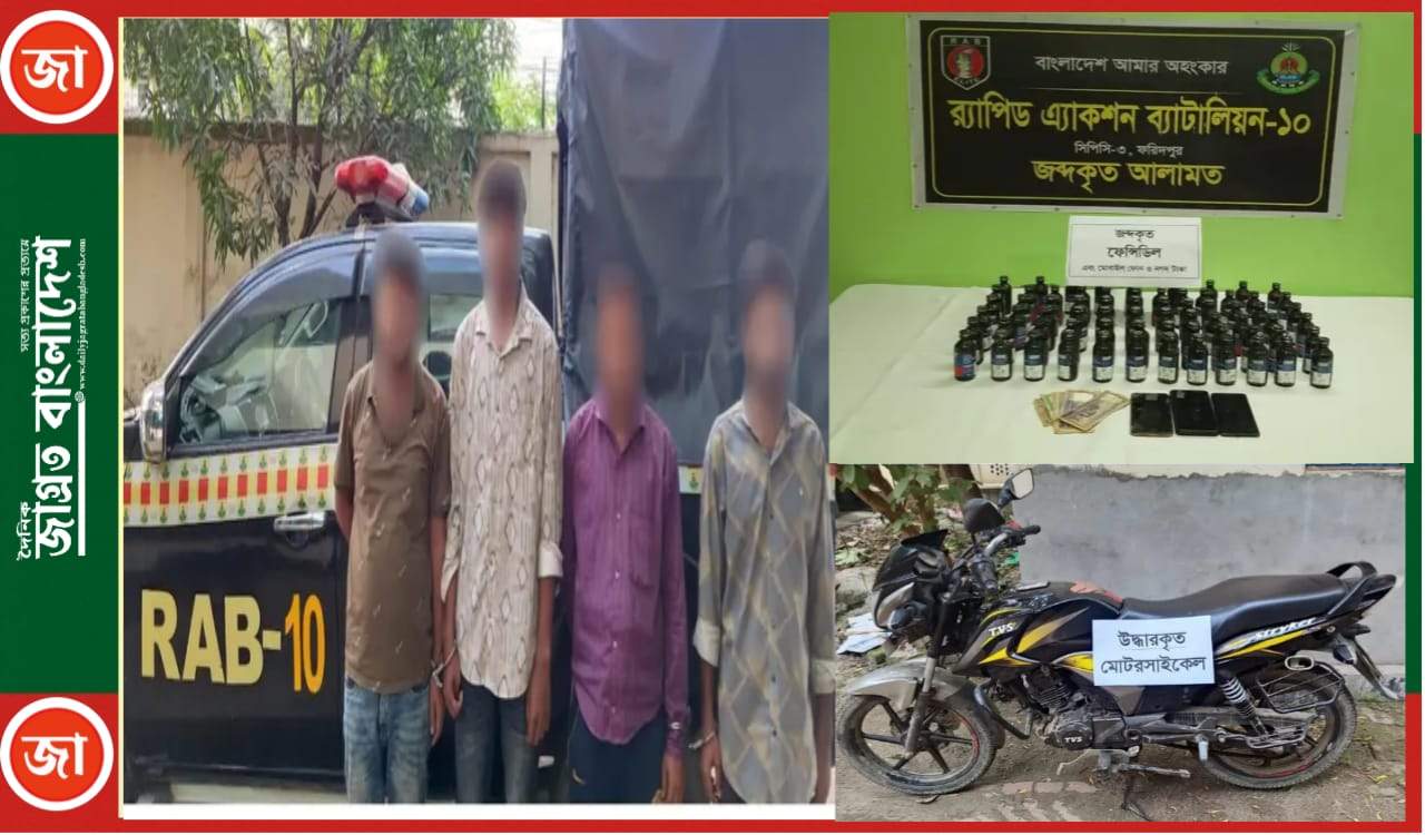ফরিদপুরে ১২০ বোতল ফেনসিডিলসহ ৪ জন গ্রেফতার, জব্দ ইয়াবা
