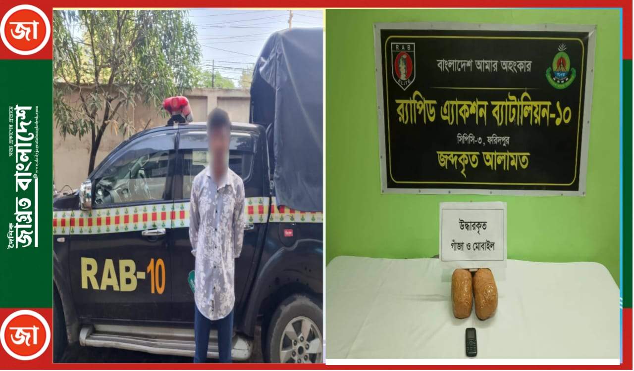 র্যাবের অভিযানে ফরিদপুরে রাব্বি আটক, উদ্ধার বিপুল পরিমাণ গাঁজা