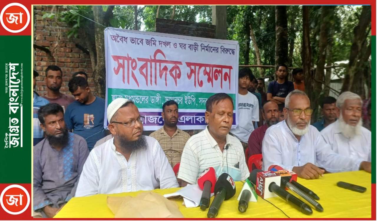 ফরিদপুরের সদরপুর উপজেলায় মাদ্রাসা প্রতিষ্ঠানের নাম ব্যবহার করে পৈতৃক জমি দখলের চেষ্টার অভিযোগে সংবাদ সম্মেলন করেছেন স্থানীয় বাসিন্দা ও সাবেক
