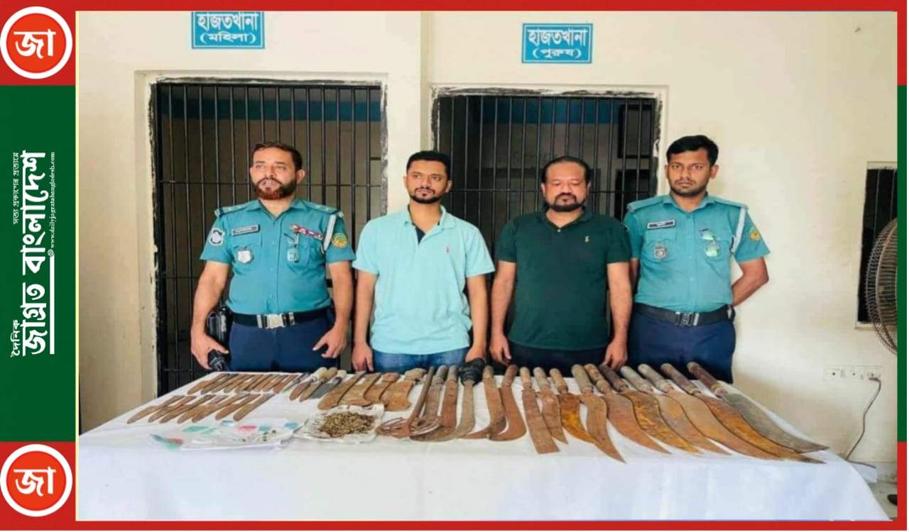 গাজীপুর সিটি করপোরেশনের নাওজোড় এলাকা থেকে বিপুল পরিমাণ দেশীয় অস্ত্র এবং গাঁজাসহ বাসন থানা বিএনপির সভাপতির ভাই ও ভাতিজাকে গ্রেফতার