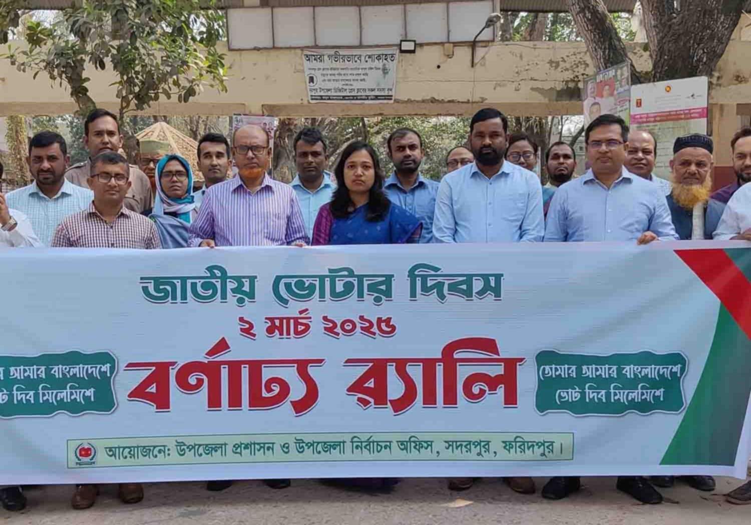 জাতীয় ভোটার দিবস উপলক্ষে ফরিদপুরের সদরপুর উপজেলা প্রশাসন চত্বর থেকে আজ রোববার সকাল সাড়ে ১১টায় একটি বর্ণাঢ্য শোভাযাত্রা র্যালি বের
